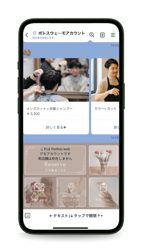 公式LINEの予約システムを開きます