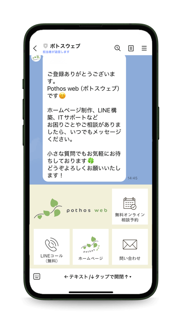 ホームーページ制作、公式LINE構築など、ポトスウェブのお仕事に関するご相談を、オンライン(Zoom)でお受けしています。どうぞお気軽にご相談ください!